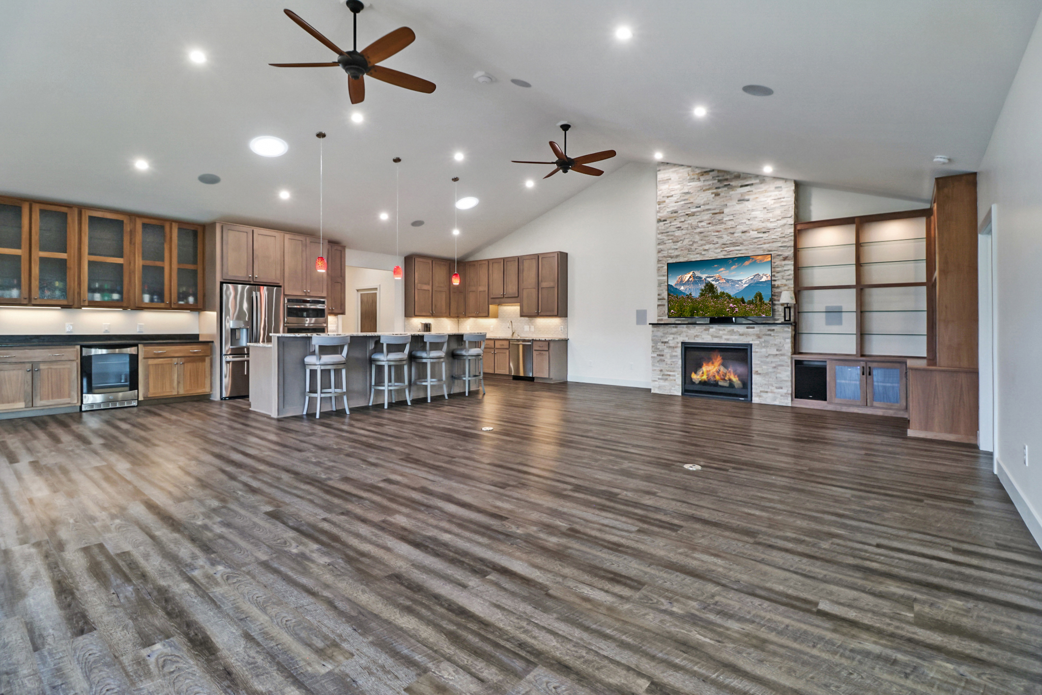 - Great room over 1,100 sq. ft. with 15’ vaulted ceilings