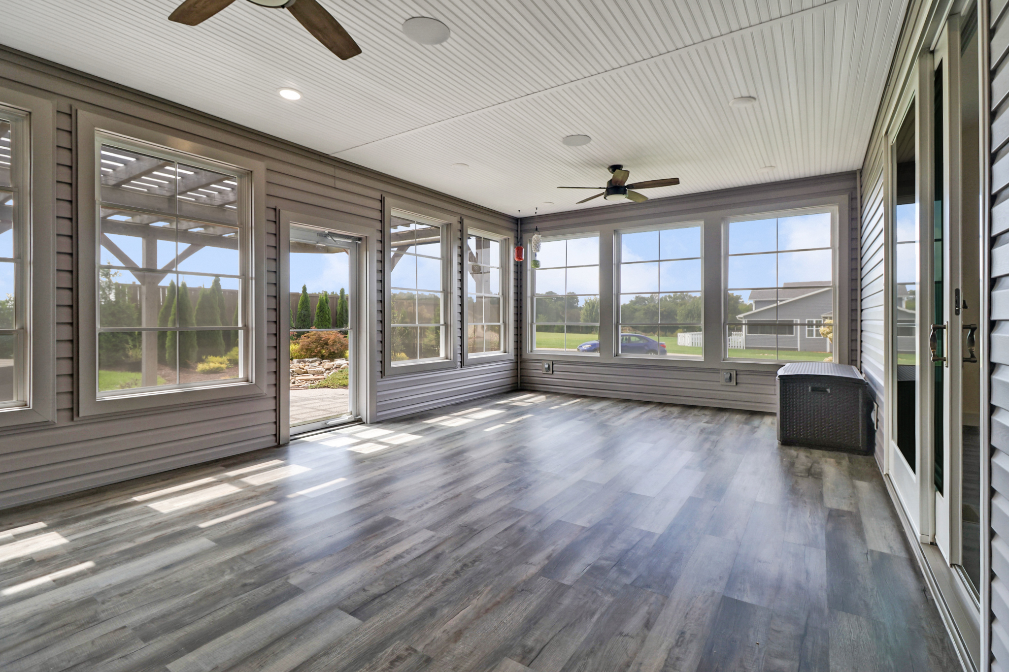- Sunroom (15’ x 23’) with two exterior walls of windows and gas fireplace