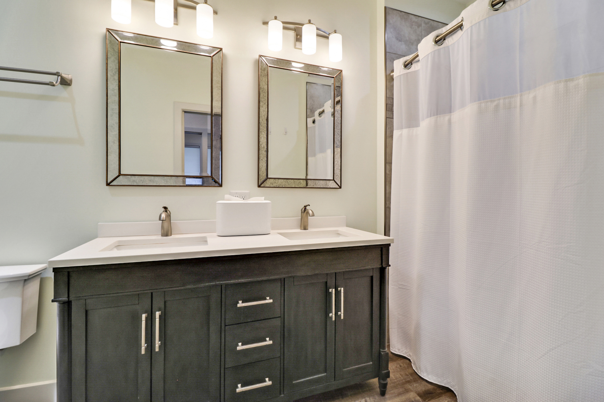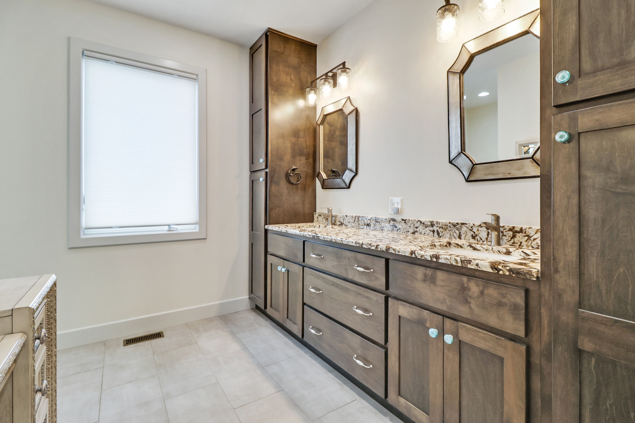 - Custom dual-sink vanity