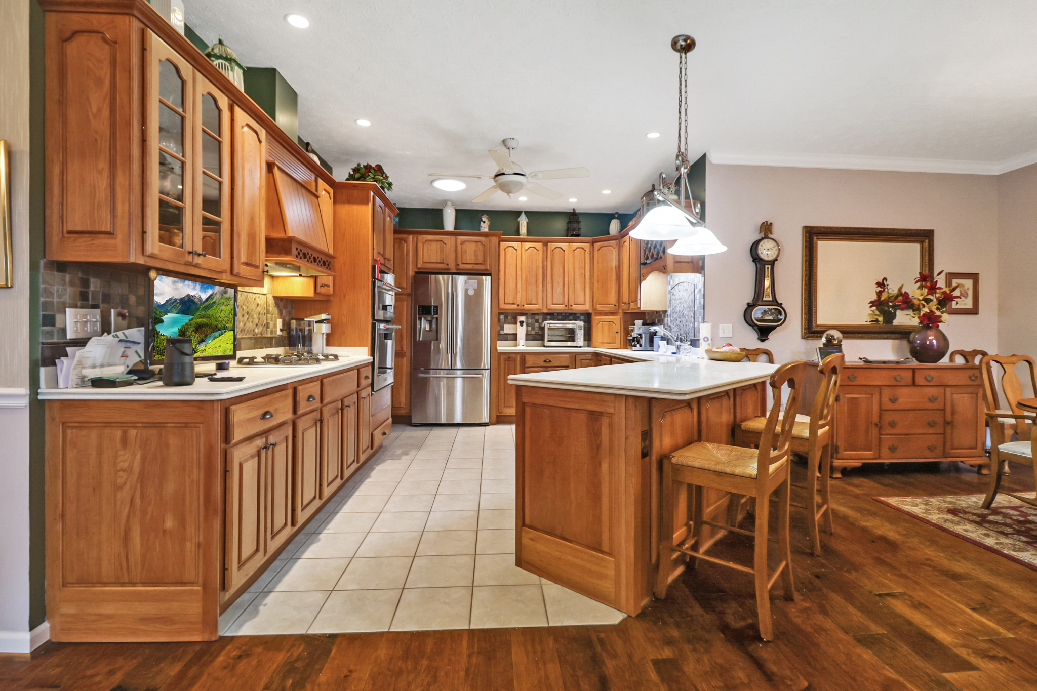 Beautiful RV Home – 3 Bedroom, 2 Bath, approximately 1,900 sq ft. RV and Car Garage, sunroom, deck with hot tub overlooks park-like setting w/ view of fountained pond.