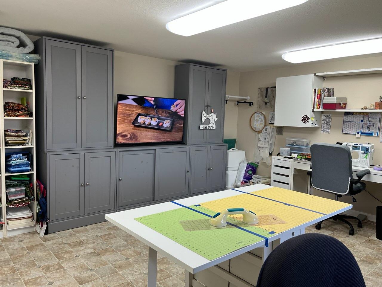 - Modified closet for office supplies, TV, WIFI, file cabinet and copier