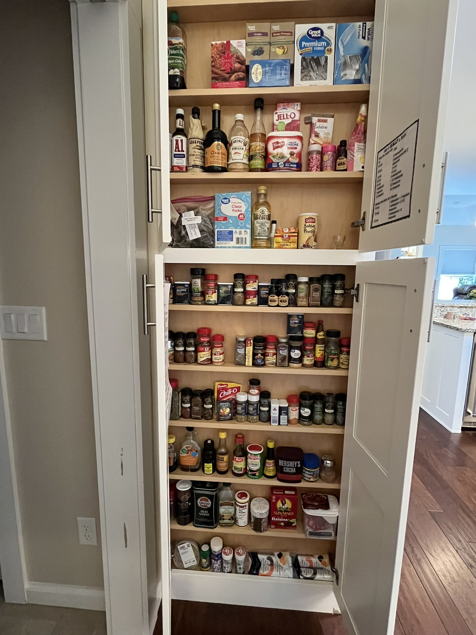 - Kitchen ceiling to floor 3/4” deep Spice Cabinet