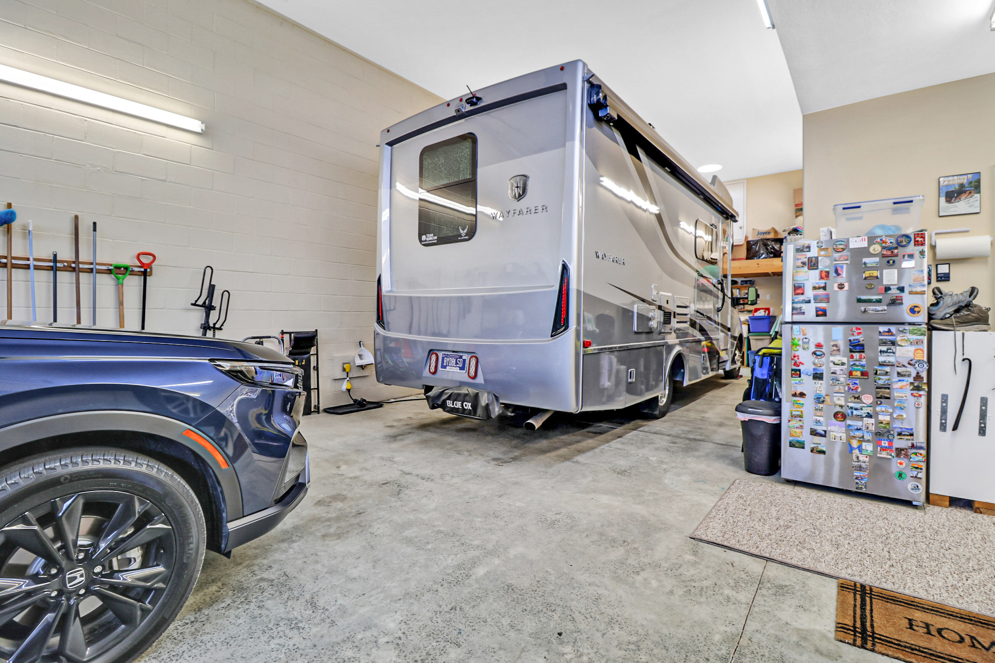 This home delivers a rare combination of functionality, thoughtful design, and outdoor living that is hard to find in today’s market. From the moment you arrive, the expansive concrete driveway and clean curb appeal set the tone, while the standout feature quickly becomes clear—an impressive 1,307 sq ft garage complete with an oversized RV bay and integrated rear storage area, offering exceptional flexibility for vehicles, hobbies, workshop space, and everyday storage.